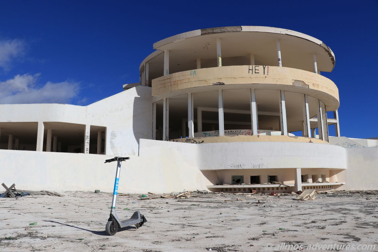 Nach der Besichtigung des ehemaligen Schwimmbads fuhren wir im Zickzackkurs wieder aus der Siedlung heraus. Mercadona und Lidl lagen auf unserem Weg, wo wir unsere Vorräte aufstockten.