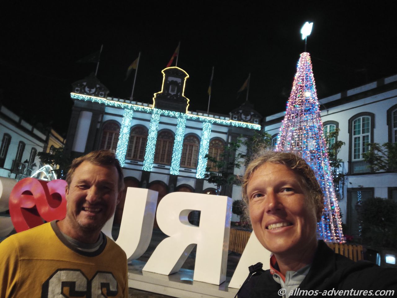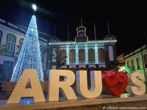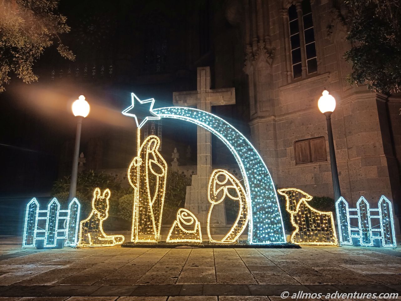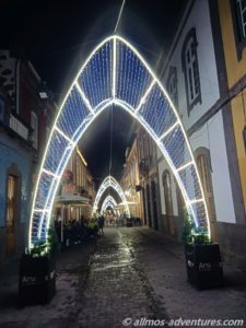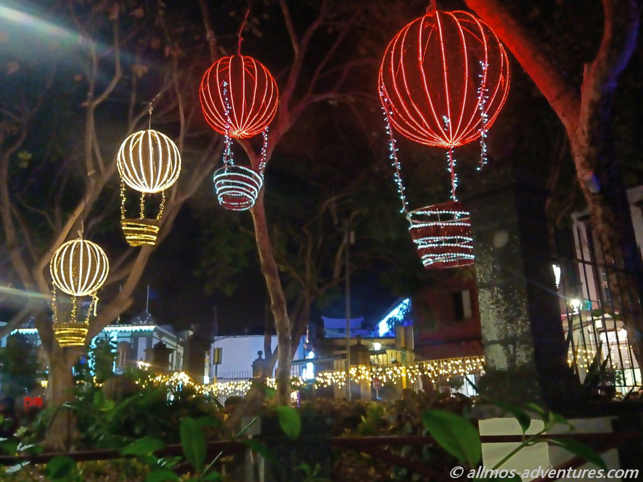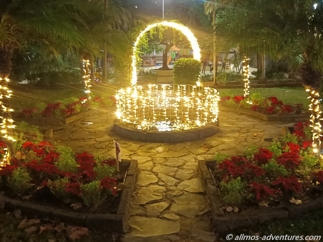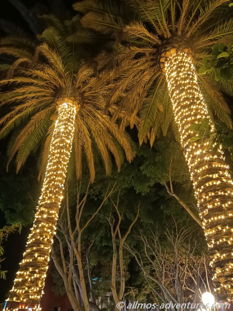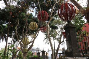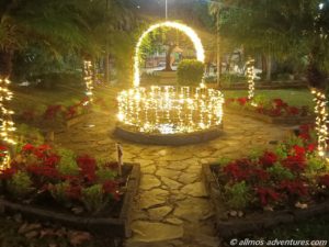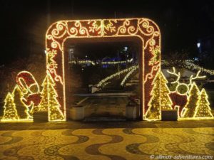 Durch den Parque Municipal schallte weihnachtliche Musik aus einem Lautsprecher. Die Lichtelemente brachten den Park zum Strahlen. Vom Park aus drehten wir wieder Richtung Kirche.