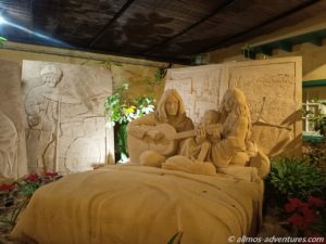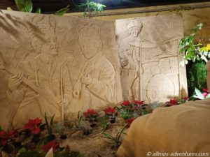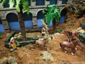 Das Museum im Parque Municipal hatte die Tore geöffnet und so sahen wir uns eine kleinere Krippe und eine etwas größere Krippe an. Beide hatten nicht den Charme der Krippe aus Galdar. Die etwas größere Krippe fand ich auch etwas zu überladen. Im Innenhof war unter dem Motto „The Beatles“ eine entsprechende Sandkrippe gestaltet worden. John Lennon, Yoko Ono und Co. waren unverkennbar.