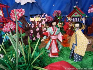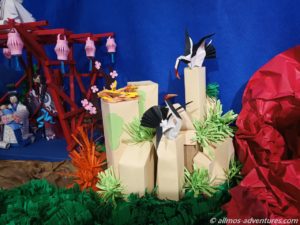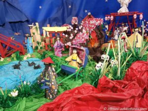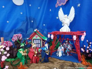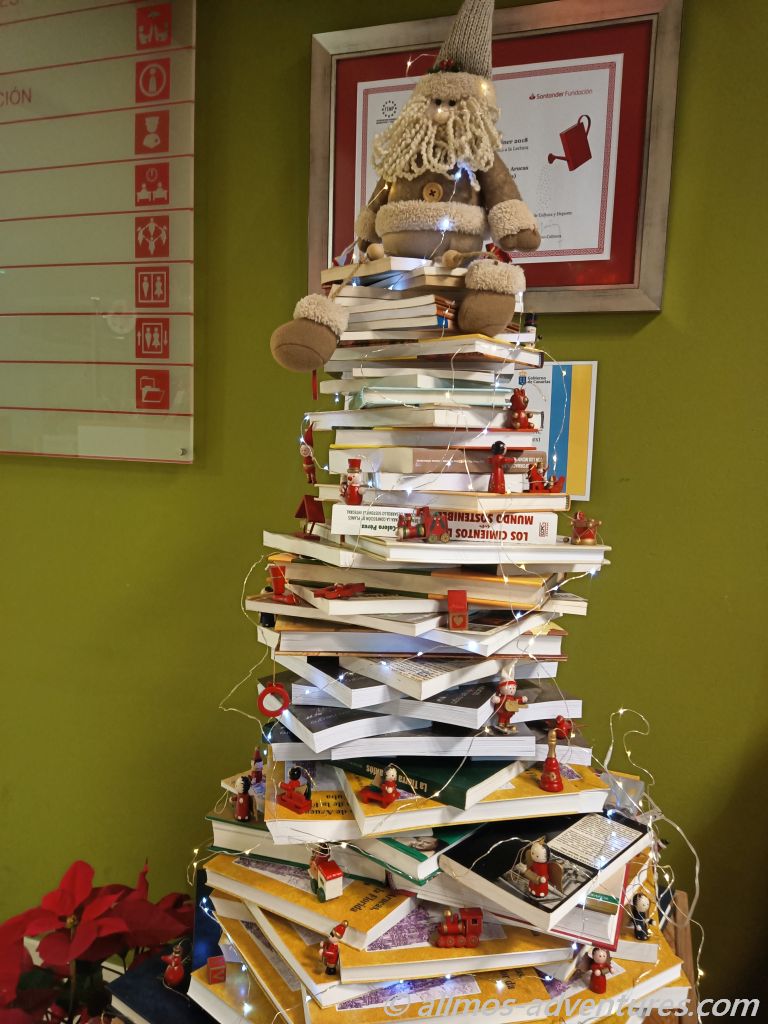 Die öffentliche Bücherei hatte ihre Pforten geöffnet und ein Weihnachtsbaum aus Büchern zog meine Aufmerksamkeit auf sich. In einem Seitenbereich war eine japanische Krippe aus Origami aufgebaut. Mal was anderes und sehr interessant.