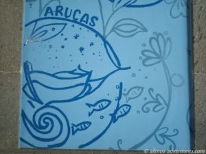 Ohne uns zu verfahren, meisterten wir den Weg vom Supermarkt bis nach Arucas. Zu Beginn der Stadt parkten wir auf einer geschotterten Fläche hinter dem kleinen Friedhof, die fast vollständig mit Pkws zugeparkt war. Entgegen unserer Gewohnheit rückwärts einzuparken, damit wir vorwärts auf jeden Fall auch wegkommen, parkten wir jedoch vorwärts an, damit wir an die Küche drankommen. Die wäre sonst in den Sträuchern verschwunden.