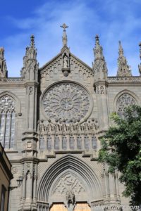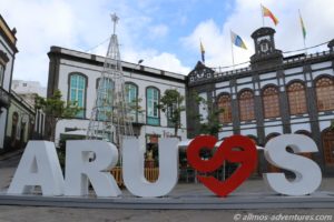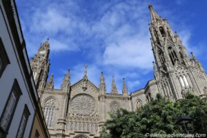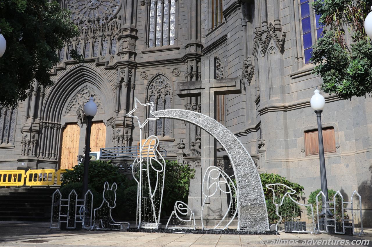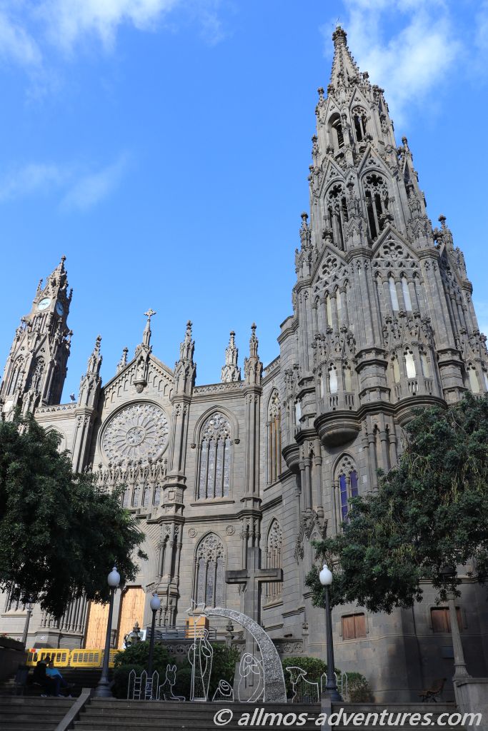 Während Frank eine Computer- und Bürozeit einlegte, erkundete ich die Stadt. Bereits vom Parkplatz aussah waren die Türme der Kathedrale Parroquia de San Juan Bautista de Arucas zu sehen, die aus schwarzem Lavastein erbaut wurde. 1907 fand der erste Spatenstich statt. 1917 wurde sie fertiggestellt.
