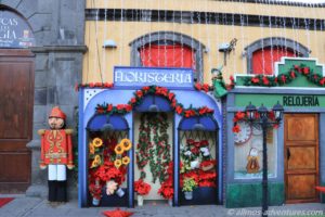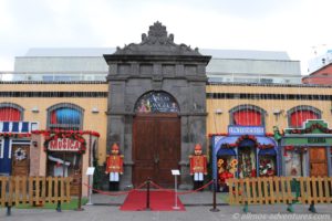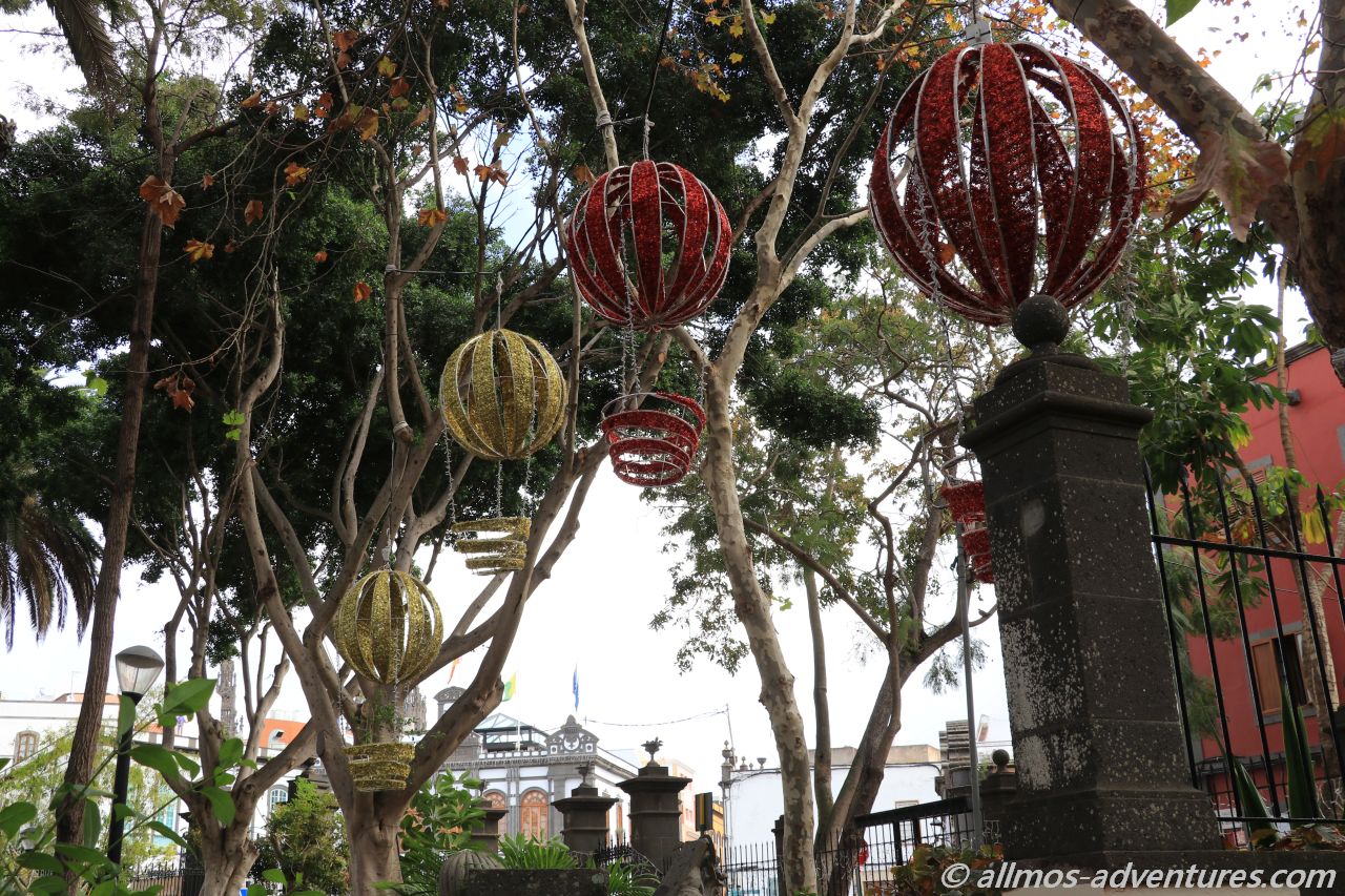 Der Weg führte mich weiter zum Plaza de la Constitution, wo vor dem einen Gebäude Häuser, Tannenbäume mit weihnachtlichen Elementen usw. aufgebaut waren.