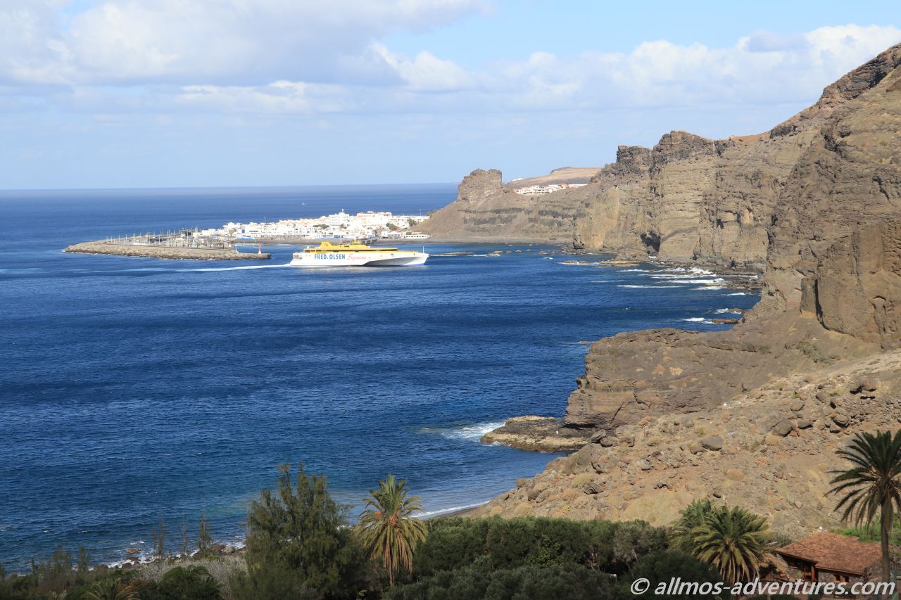 Vom Mirador hatten wir den Hafen von Agaete (von wo aus wir nächste Woche nach Teneriffa weiterfahren) im Blick und konnten im Laufe des Nachmittags mehrfach die Fähre von Fred Olsen anlegen und ablegen sehen.
