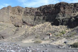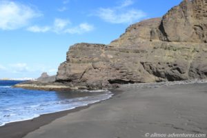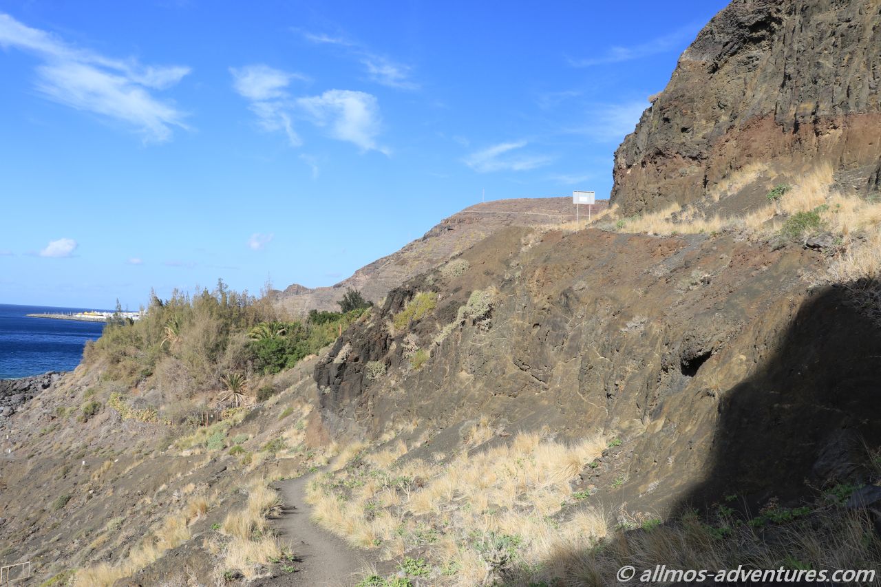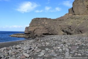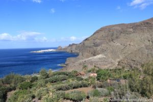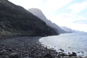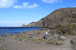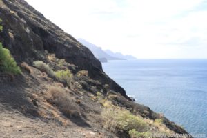 Nach einem Mittagssnack ging es für uns hinunter an die Playa de Guayedra. Auf Umwegen ging es zu dem Strand, denn neben dem Barranco de Guayedra (zwischen Mirador und Strand) befindet sich ein großes eingezäuntes Gelände. Dieses umliefen wir auf einer zunächst breiten Fahrspur und dann auf einem Trampelpfad an der Küste entlang.
