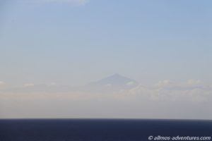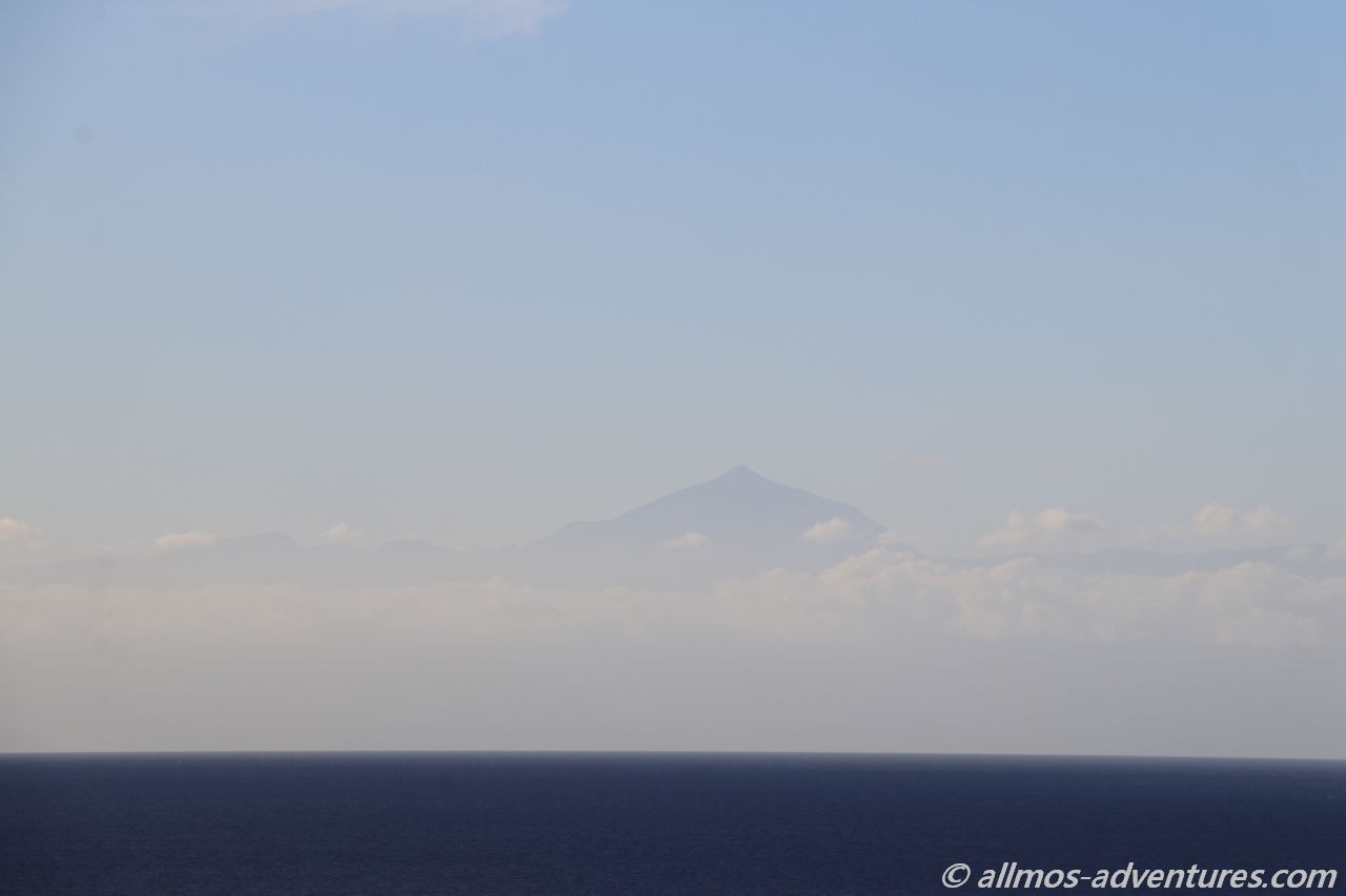 Am späten Nachmittag ließ sich dann doch tatsächlich die Spitze vom Teide blicken und auch ein winziges flaches Stück von Teneriffa wurde sichtbar. An dem Tag, als wir am Roque Nublo waren hatten wir wohl mehr als Glück mit der guten Sicht auf den Teide.