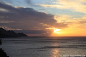 Leider frischte der Wind etwas auf, was nicht nur eine Übernachtung im Hubdach, sondern auch ein Abendessen in der Doka bedeutete. Sonst hätten wir den Romanasalat wohl irgendwo von den Klippen lesen müssen. Nun, die Tomatenscheiben wären vielleicht nicht so weit geflogen.