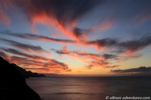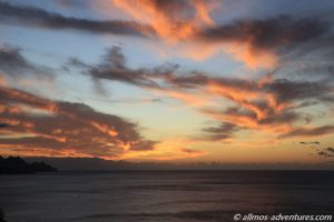Und dann wurden wir am Mirador de Guayedra noch mit einem wunderschönen Sonnenuntergang belohnt. Wobei es nicht spektakulär war wie die Sonne ins Meer versank. Das tat sie nämlich nicht, weil sich Wolken dazwischenschoben. Aber die anschließende Färbung des Himmels und der Wolken machte uns beinah sprachlos.