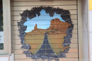 Perfekt eingeparkt ging’s zu Fuß weiter. Wir waren gerade los gelauen als es erneut zu regnen begann. Welch ein schlechtes Timing, aber egal. Über die sehr interessante Fußgängerbrücke gingen wir tapfer weiter und stellten uns dann kurz unter den Arkaden unter.