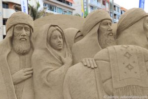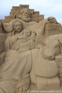 Das gute am heutigen Tag war, dass kein Kreuzfahrtschiff im Hafen lag und somit bestimmt deutlich weniger Besucher sich die Sandkrippe ansahen. Dumm war nur, dass wir mit einer großen Kindergartengruppe und ein paar Seniorenheim-Bewohnern dort eintrafen. Wir nahmen es gelassen und ließen uns Zeit.