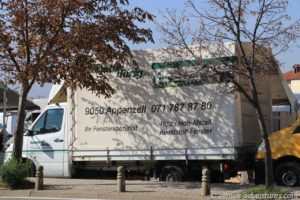 Auf der schmalen Zufahrtsstraße im Dorf stand ein 40 Tonner, aus dem gerade mit einem Gabelstapler Sachen ausgeladen wurden. Wir hielten zunächst mit Abstand und wurden dann heran gewunken. Der Firmeninhaber, wie sollte es anders sein, sprach Deutsch. Von 2010 bis 2013 hat er in Stuttgart gelebt. Seine Söhne sind dort geboren. Er lebt gerne im Kosovo und betreibt einen Handel mit Steinplatten. Seine LKWs sind in Slowenien zugelassen, wo er einen zweiten Firmensitz betreibt. Dies hat den Vorteil, dass die Fahrten innerhalb der EU uneingeschränkt möglich sind. Mit einem kosovarischen Kennzeichen sind die zulässigen Fahrten pro Jahr begrenzt.