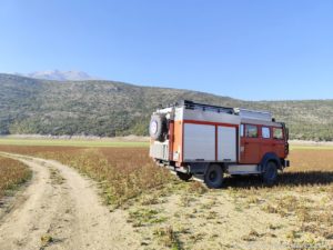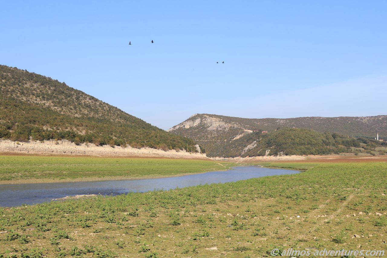 Von Prizren aus fuhren wir noch 25 Kilometer weiter, in Richtung der Grenze zu Albanien. Dort suchten wir uns in der Nähe der weißen Drin ein schönes Plätzchen am Rande des trockenen Sees.