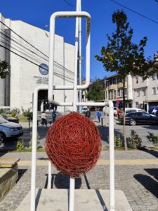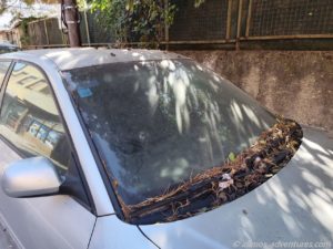 Irgendwann hatten wir es durch den Kreisverkehr geschafft und fuhren in die gleiche Richtung. Der Straßenrand war zugeparkt, die nicht offiziellen Parkplätze gegenüber von dem Markt, zwischen den Bäumen, waren auch belegt bzw. passten wir in die wenigen Vorhandenen Lücken nicht mit Allmo rein. Frank fuhr noch ein wenig weiter vom Stadtzentrum weg und parkte schließlich neben der Straße im Grünen. Frei nach dem Motto „was nicht verboten ist, ist erlaubt“.
