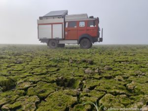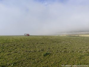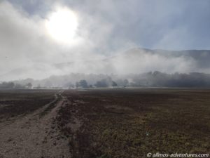 Am Morgen war Allmo vom Bodennebel eingehüllt. Als wir abfahrbereit waren, lichtete sich dieser langsam und die Berge wurden sichtbar.