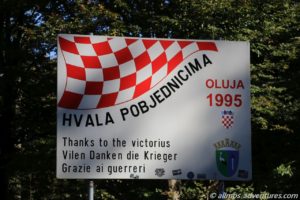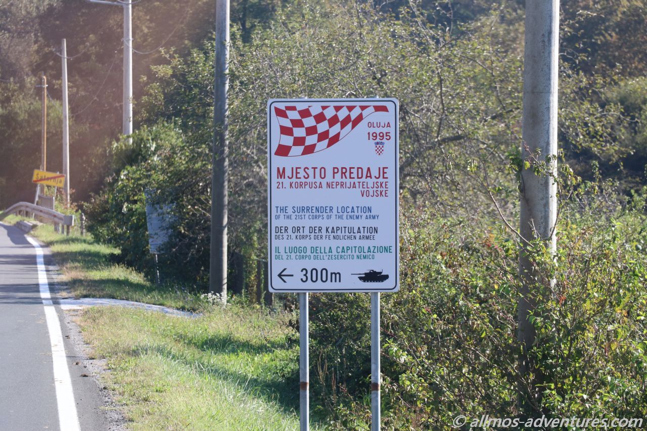 Auf dem Weg zur Jasenovac Memorial Site, einer KZ-Gedenkstätte, stoppten wir unterwegs spontan an einem Denkmal. Dieses Kriegsdenkmal wurde an dem Ort errichtet, wo das 21. Korps der feindlichen Armee im Jugoslawienkrieg 1995 kapitulierte.