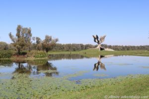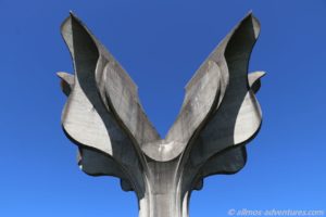Nach etwas über 2,5 Stunden Fahrt erreichten wir die Jasenovac Memorial Site. Wir parkten Allmo auf dem großzügigen Parkplatz (gemeint sind damit Parkbuchten, in denen auch kleine Reisebusse hätten parken können).