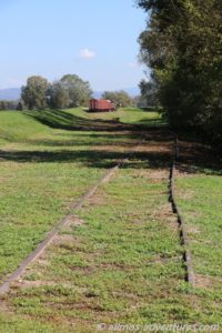 Rechts neben den Bahnschienen verläuft der Fluss Una. Dahinter befinde sich Bosnien-Herzegowina.