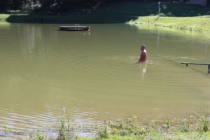 Frank hatte sich während meiner Abwesenheit bereits in die Fluten gestürzt. Gemeinsam gingen wir dann auch noch mal ins Wasser. Dieses war zwar kalt, aber bei gemeldeten 26 Grad, tat die Erfrischung im kühlen nass einfach nur gut.