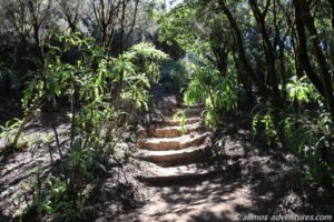 Zunächst folgte ich dem gepflasterten Pfad, der immer schön bergauf führte. Nach einer Weile verließ ich diesen Pfad und folgte dem Wanderweg. Ab der Stelle handelt es sich quasi um einen Rundweg. Ich hätte also auch dem gepflasterten Weg einfach folgen und gegen den Uhrzeigersinn laufen können.