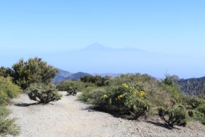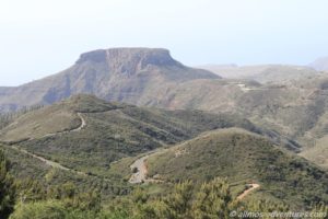 Von dem ausgeguckten Übernachtungsplatz, neben einer Piste, die von der Hauptstraße abzweigt, trennten uns nur wenige Kilometer. Wir suchten uns ein schönes, wenn auch etwas schräges Plätzchen mit Blick auf den Roque de Agando und Teneriffa.