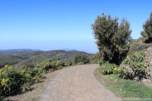 Der gepflasterte Weg führt von der Straße bis zum Mirador bzw. daran vorbei bis zu den Antennen. Befahrbar ist dieser jedoch nur für autorisierte Fahrzeuge. Ein Pöller versperrt direkt zu Beginn des Pfades den Weg und lässt sich nur mit einem speziellen Schlüssel entfernen. Dies bekamen wir auch mit, als wir zu Anfang dabei waren unser Eis zu verspeisen. Ein mit drei Personen besetzter Pickup einer Firma kam den Weg heruntergefahren. Plötzlich vernahmen wir die Worte „Bomero“ und „Autocaravana“. Die Herren hatten es schnell geblickt. Einer von denen kam zu Fuß zum Parkplatz gelaufen, weil er seinen Pkw dort stehen hatte und meinte im Vorbeigehen, dass dies der beste Camper auf La Gomera wäre. Da sind wir ganz seiner Meinung.