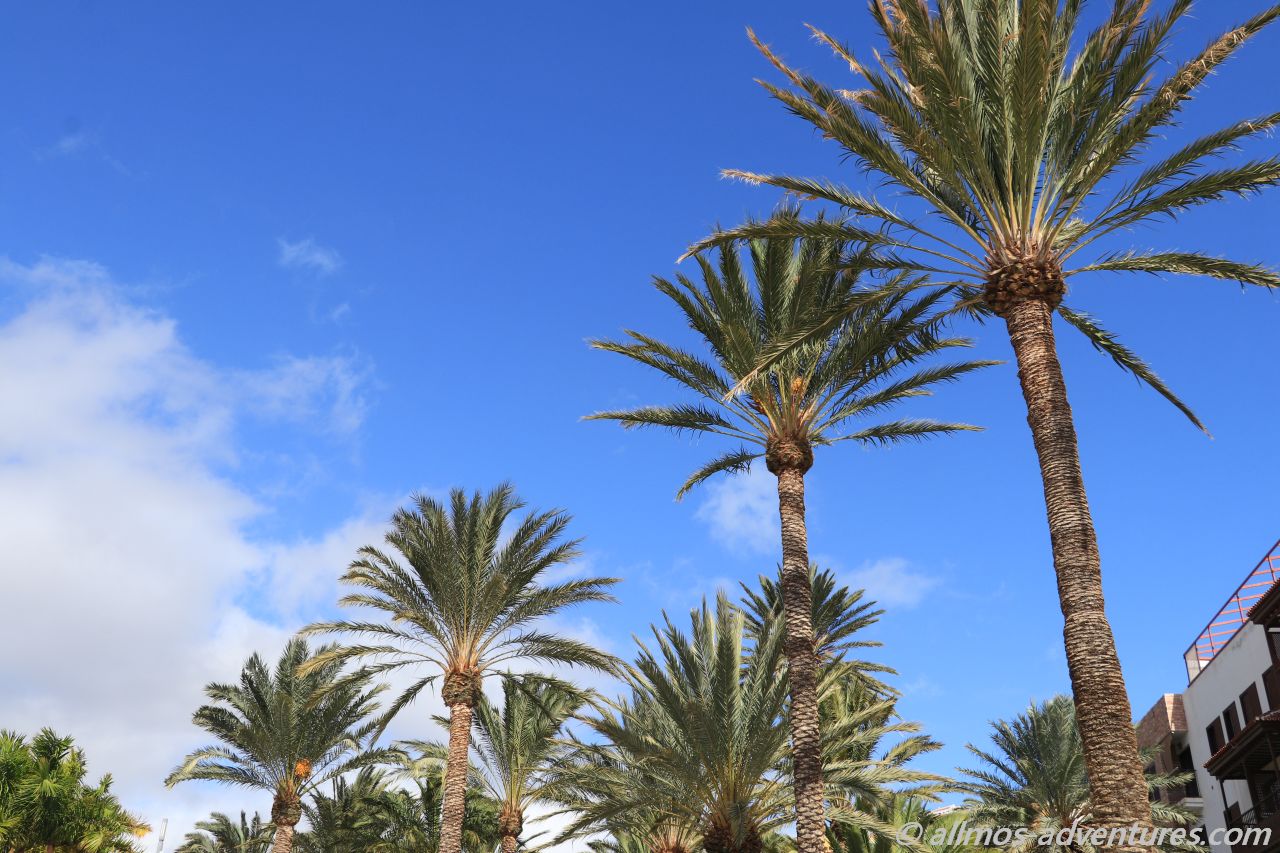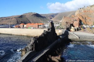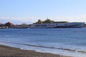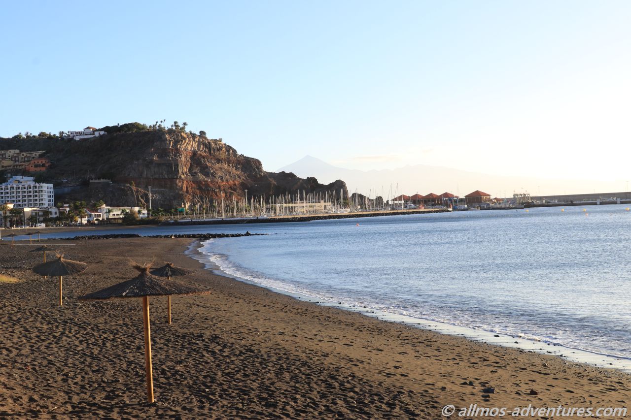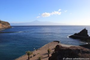 Bereits am Morgen war die Promenade von Spaziergängern gut besucht. Die Sonne strahlte mit einer unglaublichen Intensität, es wehte ein leichtes Lüftchen. Das gestern bei der Überfahrt noch eine dicke Regenwolke über La Gomera hing, ist heute kaum vorstellbar. Uns freut es natürlich. Wir frühstückten auf der Bank neben Allmo mit Meerblick.