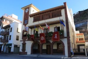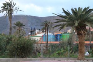 Vorbei an dem dicken Torre del Conde (es soll sich um das älteste Gebäude auf La Gomera handeln), der von einem Park mit mehreren Wasserbrunnen umgeben wird, ging’s zurück zu Allmo. Frank telefonierte immer noch bzw. schon wieder.