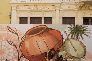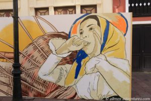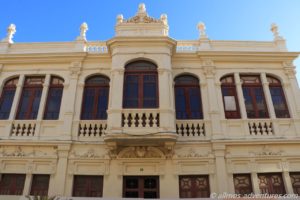 Auf der Plaza de las Americas befinden sich ein paar alte Gebäude. In einem davon ist das Rathaus untergebracht. Dort stand auch die große Bühne, von der gestern die Musik kam. Die angrenzenden Cafes waren gut besucht.