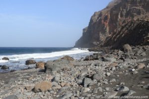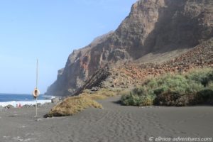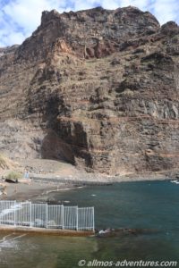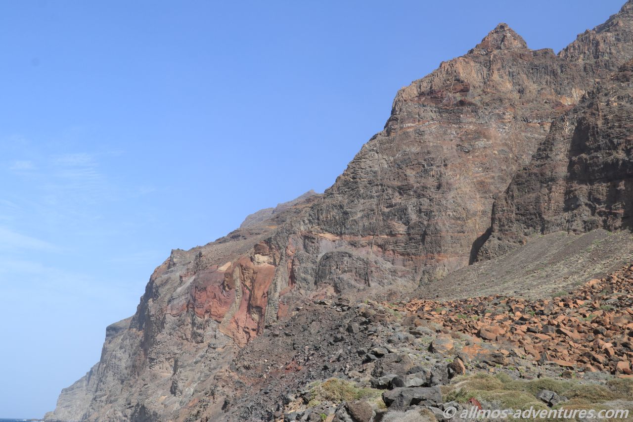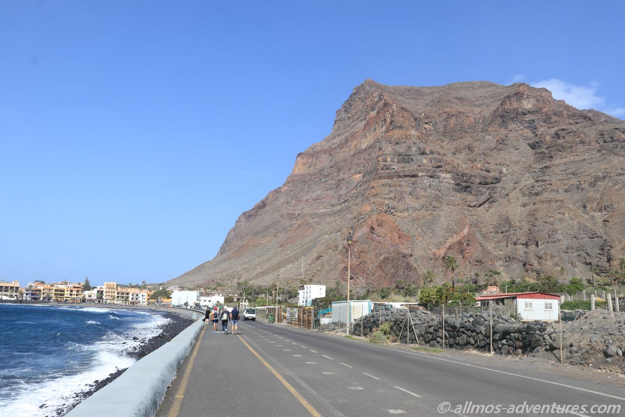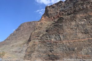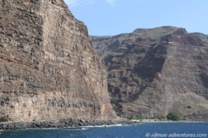 Vom Hafen, entlang dieser riesigen Klippe, führt eigentlich ein Weg/eine Piste bis in das Barranco de Argaga. Doch der Weg ist wegen eines Felsabgangs für die Öffentlichkeit gesperrt. Nur die Anwohner des Barrancos dürfen dort entlang gehen/fahren. Das Barranco soll traumhaft schön sein. Woran ich keinen Zweifel habe.