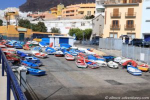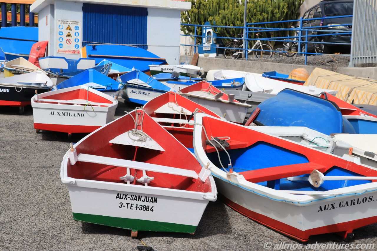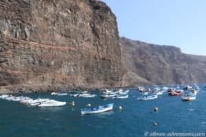 In der geschützten Bucht lagen viele kleine Boote vor Anker, ebenso viele lagen im Trockenen. Wie der ganz Ort, so befindet sich auch der Hafen, der sich im Ortsteil Vueltas befindet, vor einer Wahnsinns Kulisse.