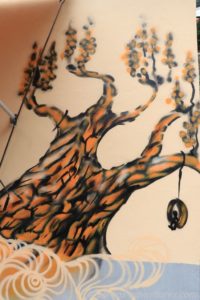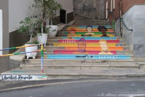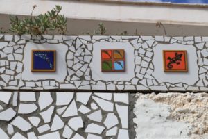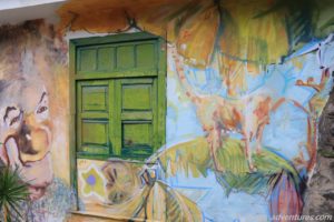Anschließend begab ich mich auf die andere Seite der Hauptstraße und stromerte ein wenig durch das Treppenviertel La Calera. Nun gut, der Name „Treppenviertel“ kommt nicht von ungefähr. Viele kleinere und breitere Treppen führen durch dieses Viertel. Ein paar schön bemalte Hausfassaden fand ich auf meinem Weg. Der Mirador neben der alten Schule ist im Moment wegen Bauarbeiten gesperrt. Doch auch ohne Mirador hatte ich einen wunderbaren Blick auf die Landschaft. Besonders der Berg vor mir sah sehr beeindruckend aus. Idealerweise hatte die Sonne sich zu dem Zeitpunkt aus dem Wolkenschleier herausgeschält und leuchtete diesen Berg an. Theoretisch kann man auf die Spitze des Berges laufen, praktisch ließ ich dieses sein. Das ich ohne einen Tropfen Wasser losgelaufen war bereute ich eh schon.