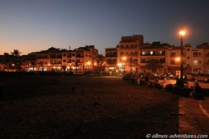 Nach meiner Rückkehr entschied ich relativ schnell, dass ich einen weiteren Tag in der Doka nicht aushalten werde. Daher packte ich meine Sachen und ging zu Fuß zur Playa del Ingles. Direkt an den Strand angrenzend befinden sich hübsche Steilklippen, was wohl auch das Besondere des Strandes ausmacht. Von Hippies war weit und breit nichts zu sehen, vielleicht versteckten die sich in irgendwelchen Nischen und kommen erst später zum Vorschein.