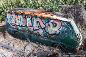 Bis um halb 4 Uhr war es eine angenehme und ruhige Nacht. Doch dann frischte der Wind so sehr auf, dass wir unser Dachzelt zusammenklappten. Während Frank unter dem Deckel liegen blieb, wo es ihm im Laufe der restlichen Nacht sehr warm wurde, verzog ich mich nach vorne in die Doka.