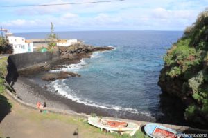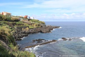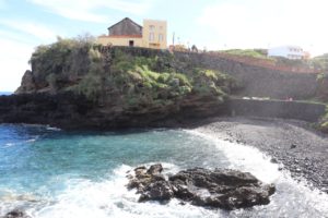Wir verließen die Hauptstraße und folgten dem Weg nach San Andres. Das kleine Dorf machte bei der Durchfahrt einen sehr netten Eindruck. Etwas weiter nördlich gelegen befindet sich das Meerwasserschwimmbad Charco Azul. Mehrere Parkplätze kamen für die Übernachtung in Frage. Der Weg führte uns zunächst zu dem direkt angrenzenden Parkplatz, der aus Parkbuchten (rechts) bzw. Parkstreifen (links) zu beiden Seiten der Einbahnstraße besteht. Diese waren natürlich alle belegt, aber an der Straße von wo wir kamen war noch etwas frei, so dass Frank uns dort einparkte. Somit hatten wir auf jeden Fall einen Parkplatz, wenn auch in Schräglage.