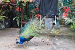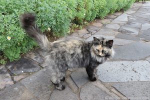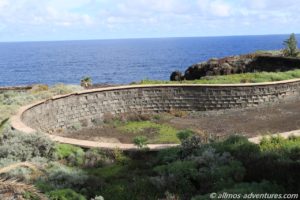 Anschließend verschlug es mich in die genau entgegengesetzte Richtung (also wieder an dem ersten Parkplatz vorbei). Eine schön angelegte Promenade mit unzähligen Bänken zum Ausruhen und aufs Meer schauen, führte mich zum Horno de la Cal, einem alten Kalkofen, der entweder sehr gut erhalten ist oder restauriert wurde. Unterwegs traf ich eine Katze und zwei Pfaue. Ja richtig gelesen, an einer Hofeinfahrt standen sowohl ein männlicher als auch ein weiblicher Pfau. Auf dem Rückweg waren sie verschwunden. Als ich Frank später davon erzählte, meinte er ganz nüchtern, dass die in der Zwischenzeit vermutlich in der Pfanne gelandet wären.