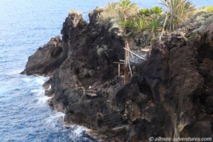 Durch diese Infrastruktur ist das Charco Azul natürlich beliebt. Die Besucherzahl hielt sich zu unserer Besucherzeit allerdings in Grenzen. Von einem älteren Herrn erfuhren wir noch, dass heute die Meeresschwimmbecken im Norden bei La Fajana gesperrt wurden. Die Wellen müssen um die 15 Meter hoch sein, was dazu führte, dass alle drei Meeresschwimmbecken überflutet wurden. Eigentlich ist sonst nur das unterste, der terrassenförmig angelegten Becken, davon betroffen. Vermutlich werden wir morgen zum Übernachten dorthin fahren und uns anschauen, wie die Lage ist.