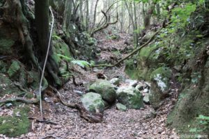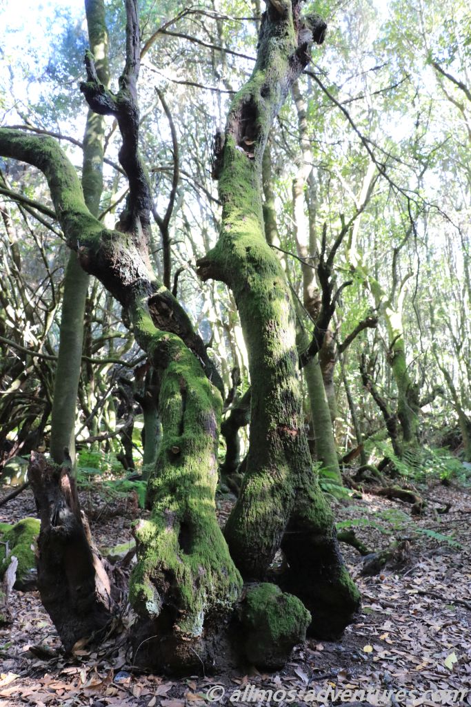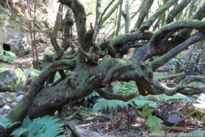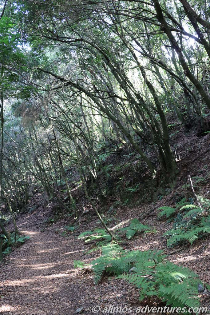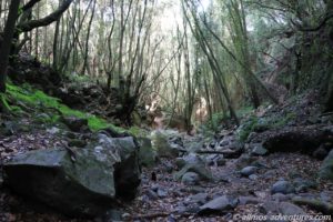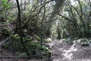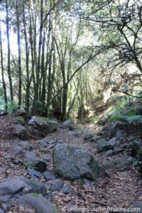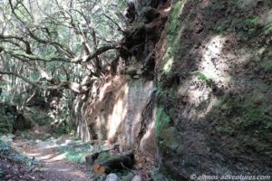 Hinter der Unterführung war der Weg zunächst noch relativ breit und wir bogen wenig später in den Wald ab. Als ich gestern mir die Wanderung ansah und auf den ersten Bildern nur Wald zu sehen war, war ich sehr skeptisch, ob wir diese Wanderung überhaupt angehen sollten. Schließlich waren wir vor ein paar Tagen vier Stunden durch den Wald bei La Galga gewandert und waren nur so semi begeistert davon gewesen. Doch dann entdeckte ich, dass es auf der Wanderung tatsächlich interessante Passagen gibt und da sich dieser interessante Bereich auf einer Strecke von 2 – 2,5 Kilometern befindet, in Summe also um die 5 Kilometer, schien die Wanderung für uns doch lohnenswert und erträglich.