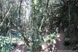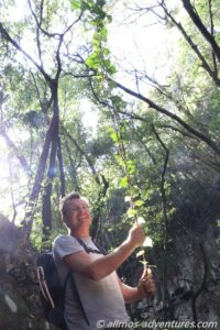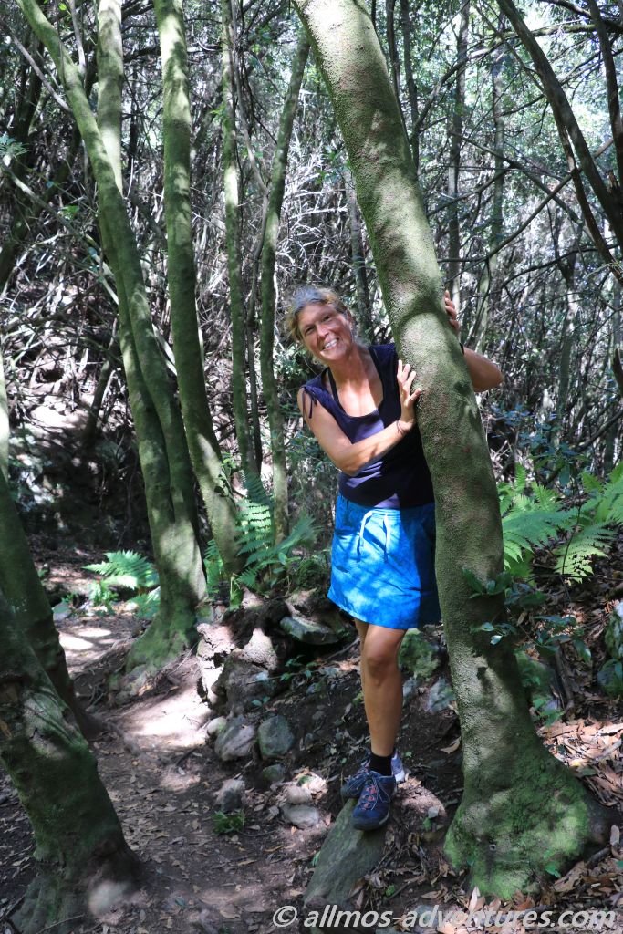An dieser Stelle drehte ich dann um, denn das Knarren der Bäume war mir etwas zu unheimlich. Frank war auch schon aufgestanden und bereit für den Aufstieg. Langsam gingen wir berghoch und legten immer wieder kleine Verschnaufpausen ein. So schafften wir die Aufstiege ganz gut. Nach 5,2 Kilometern und 1,5 Stunden waren wir zurück bei Allmo.