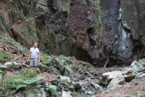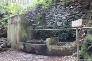 Während Frank am Wasserfall auf mich wartete, ging ich noch ein wenig weiter in das Barranco hinein. Hinter einer Kurve befand sich eine Becken mit einem Wasserhahn. Das Wasser in dem Becken sah eher unappetitlich aus, aber aus dem Wasserhahn kam tatsächlich frisches Wasser.