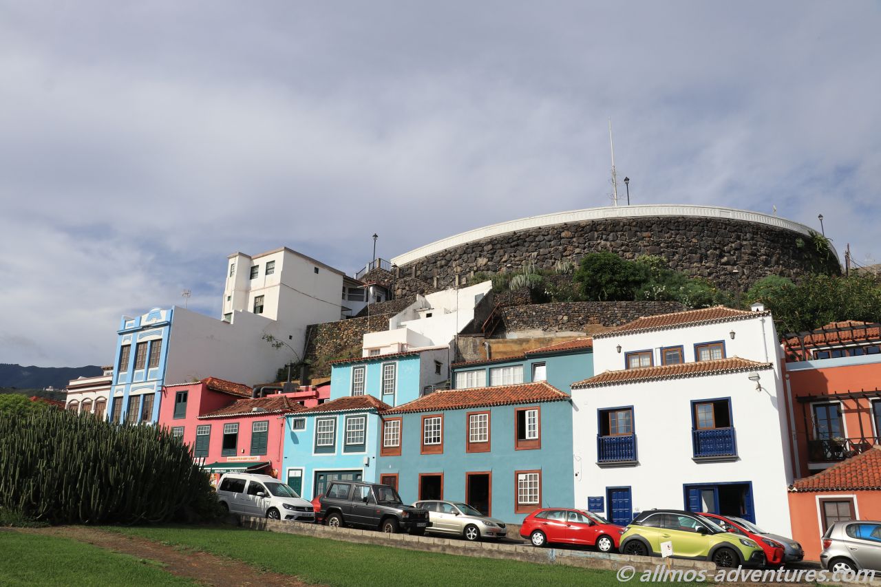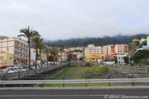 Nach dem wir vor beinahe zwei Wochen im Hafen von Santa Cruz angekommen waren, wollten wir uns nun doch die Hauptstadt von La Palma ansehen. Der von mir ins Auge gefasste Parkplatz in einem Barranco war heute nicht zum Parken freigegeben und dementsprechend abgesperrt. Am Straßenrand konnten wir auch keine für uns geeignete Lücke bzw. Parkbucht entdecken. Wir fuhren ein Stück weiter, hielten uns halb rechts und landeten in einem sehr kleinen Gewerbegebiet. Dort stellten wir Allmo auf einem kostenfreien Parkplatz ab und gingen zu Fuß zurück in die Stadt.