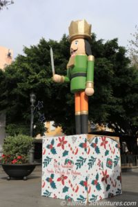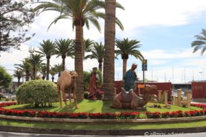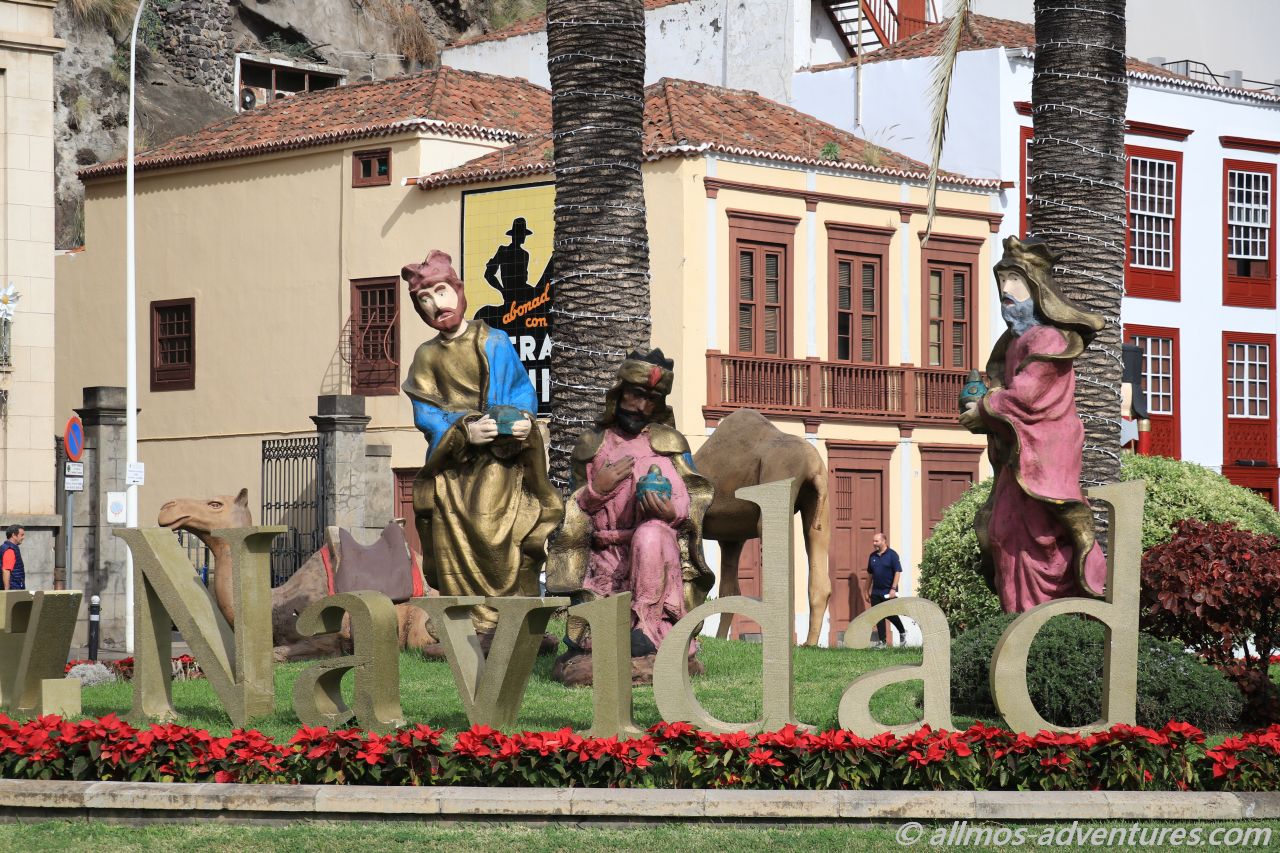 Von der hübschen Plaza de Espana mit den alten Häusern und der Kirche folgten wir der Fußgängerzone weiter, bis wir an der Hauptstraße mit dem Kreisverkehr auskamen. Dort waren wir vorhin langgefahren und das der Kreisverkehr mit den drei heiligen Königen hübsch dekoriert war, konnten wir uns dies nun aus der Nähe ansehen.