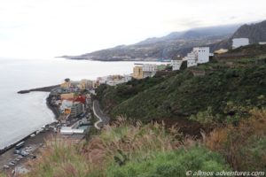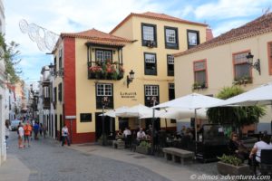 Das La Palma ein Dorf ist, durften wir wieder mal feststellen, als wir die Kirche verließen. Direkt vor dem Eingangsportal standen zwei Damen, die wir beim Besuch des Mirador Oficial Tajogaite getroffen hatten. Dort sprachen sie uns an, weil sie unseren Allmo schon vom Barranco de Angustias kannten. Auch ein Paar, dass wir gestern beim Wandern gesehen hatten, sahen wir in einem der Cafes sitzen.