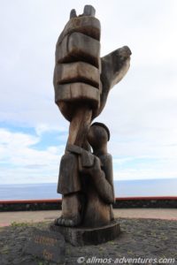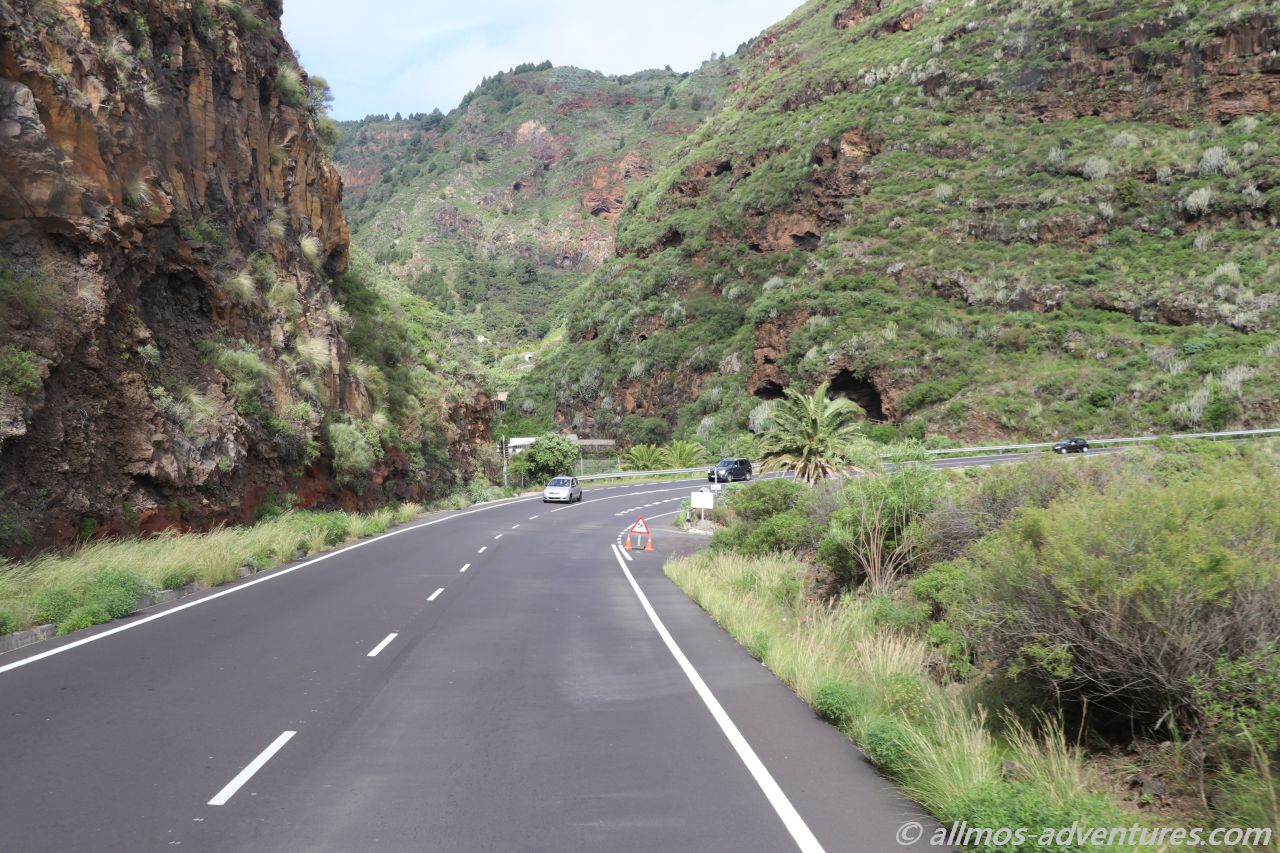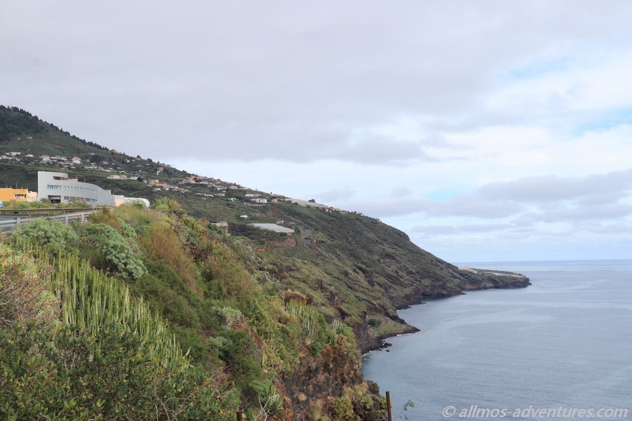 Ein paar Kilometer hinter der Tankstelle stoppten wir am Mirador Barranco de Los Gomeros. Wir blickten auf die beeindruckenden Klippen der Steilküste im Norden. Schön grün bewachsen sind diese. Leider zog es sich inzwischen etwas zu und die Sonne kam nur noch sporadisch durch.