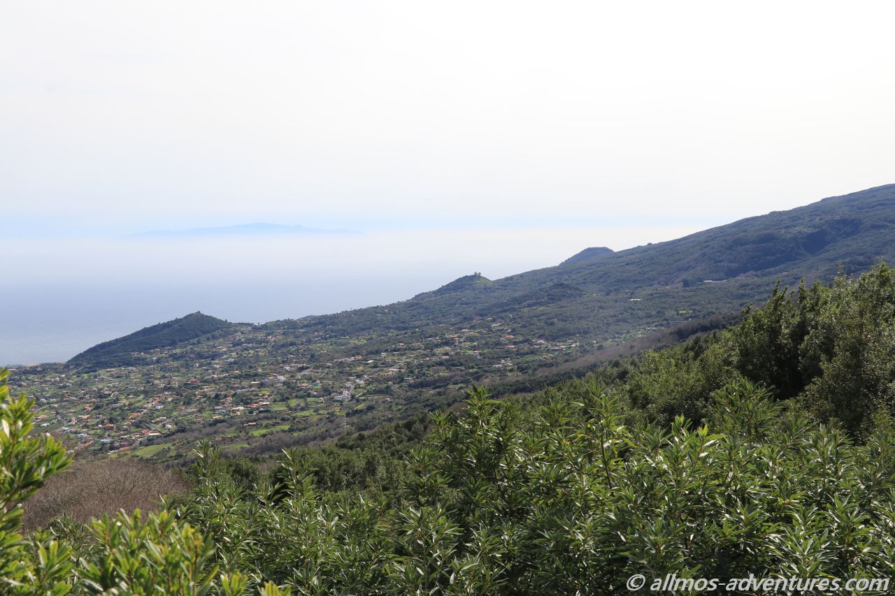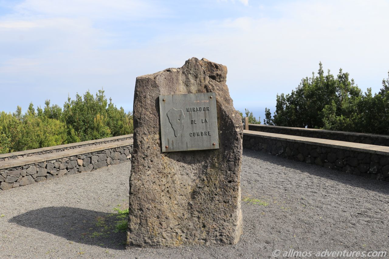Auf dem Weg nach Tijarafe stoppten wir am wenig spektakulären Mirador de la Cumbre. Die Aussicht war weitestgehend durch inzwischen hoch gewachsene Sträucher und Bäume versperrt. Da nützt es auch nichts, dass auf Steinblöcken, die in verschiedenen Richtungen liegen, der Name der Stadt steht, die man theoretisch sehen könnte.