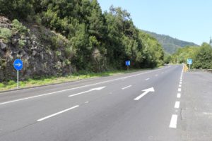 Der Mirador befindet sich an einer zweispurigen Einbahnstraße. Für die ganz vergesslichen Leute sind großer Schilder mit der Fahrtrichtung und Pfeile auf dem Boden angebracht.