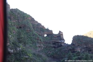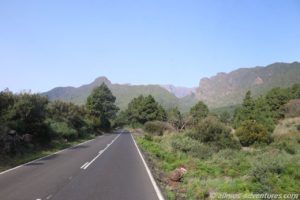 Von der langen Fahrstrecke heute war Frank leicht genervt und nun ging es auch schon wieder die Berge hinauf zum Mirador El Time. Kurz zuvor stoppten wir noch an dem Mirador Barranco de las Angustias. Von dort hatten wir auch schon einen schönen Blick auf das Barranco und die Umgebung von Tazacorte.