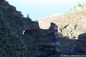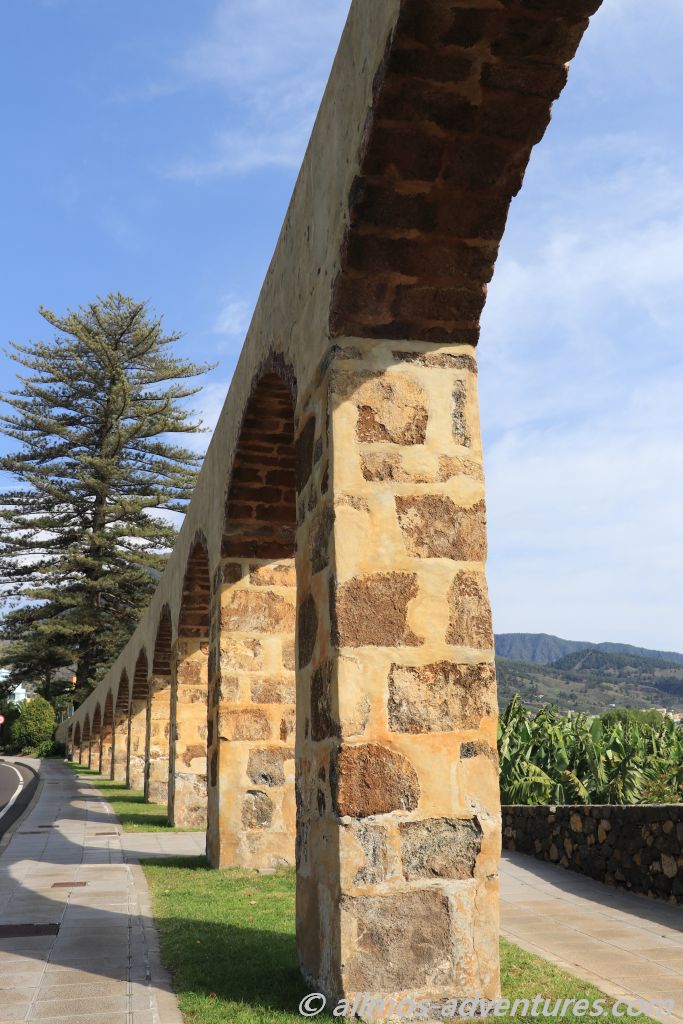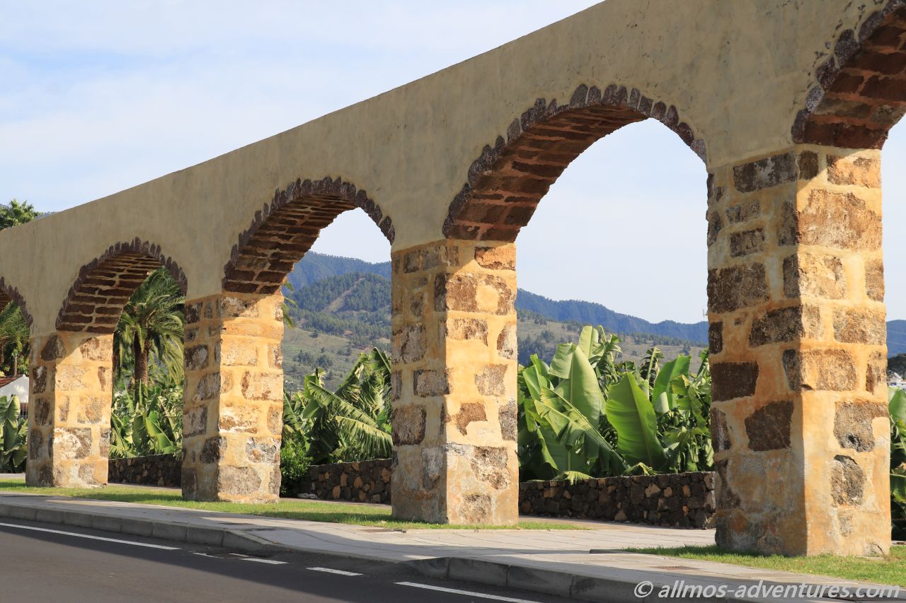 Wir folgten der Hauptstraße, fuhren an El Paso und Los Llanos vorbei und stoppten am Straßenrand in Argual. Dort stehen entlang der Hauptstraße Reste eines alten Akquädukts. Auf dem Weg von Puerto de Tazacorte nach Los Llanos waren wir letzten schon daran vorbeigefahren oder vielmehr geflogen, ohne anzuhalten.
