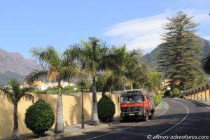 Zum Übernachten hatte ich einen Stellplatz neben einem Friedhof in Tijarafe ausgesucht. Dort gibt es die Möglichkeit Grauwasser zu entsorgen (allerdings nur wenn man den Kanaldeckel öffnet und genau über dem Loch parkt (wird schwierig, da sich das in einer Ecke befindet) und kostenfrei Frischwasser zu tanken.