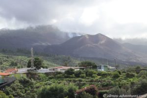 Vom Mirador El Time ging es hinab ins Barranco de las Angustias. Wir sahen heute, dass es aus dem Vulkanschlot des Tajogaite qualmte. Hübsch ist der Vulkan anzusehen, wenn nur nicht die verheerenden Folgen gewesen wäre.