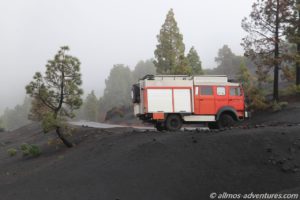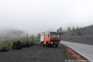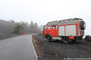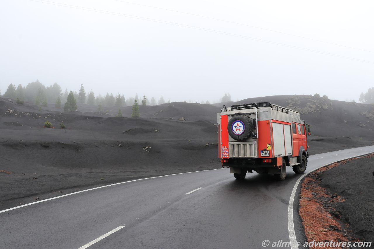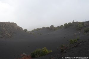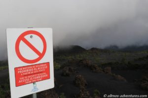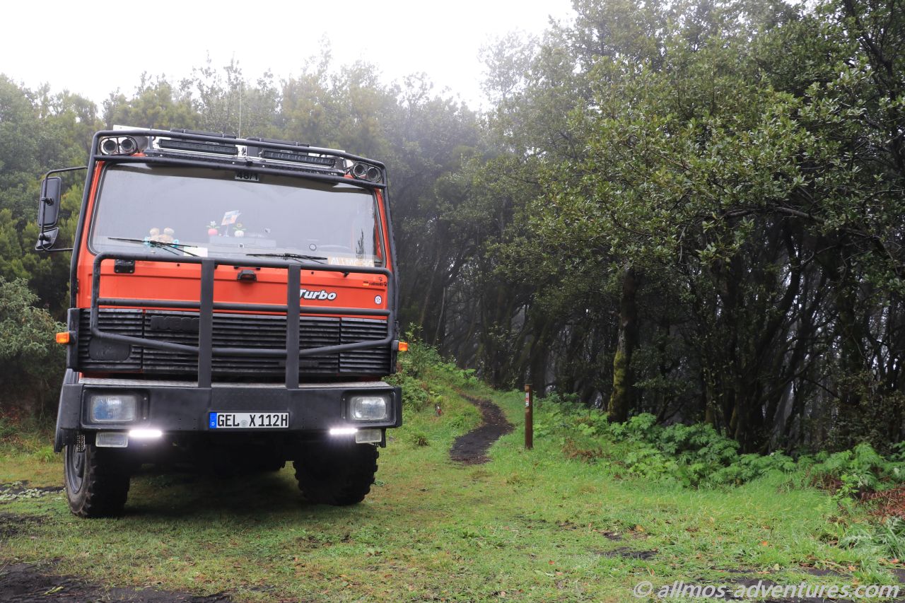 Kurz hinter der Area Recreativa El Pilar parkten wir Allmo in einer Kurve. Von dort führt ein Weg zu der Cumbre Nueva. Von dem Parkplatz an der Straße ist es ein Weg von rund 2 Kilometern hin und das gleiche dann auch noch mal zurück. Leichter Nieselregen setzte ein, mir war kalt. Sollen wir uns das wirklich antun?